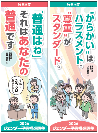 自治労は「ジェンダー平等推進」の理解促進のため、今年度のキャッチコピーを募集し、211件の応募の中から特賞、佳作を選考した。