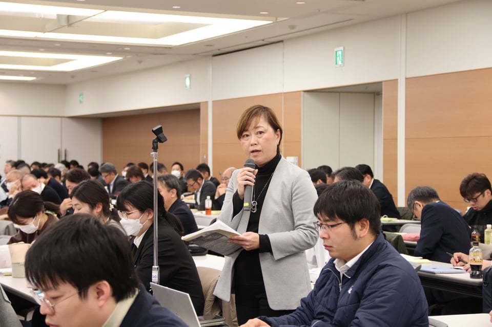 春闘方針案の柱は、全単組での「人員確保」要求と賃金運用改善などの「1単組1要求」の取り組み。参加者からは職場実態と2025確定闘争の取り組みを踏まえた発言が相次ぎ、賃上げの社会的気運の高まりを背景に、強い決意で交渉を前進させようとする決意を固めあった。