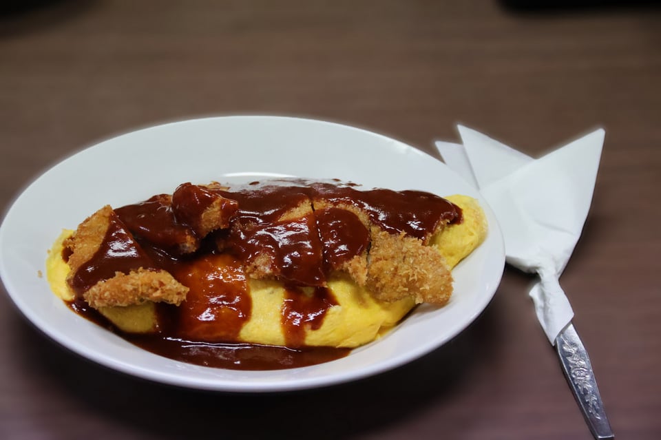 オムライスの上にトンカツ、ソースがたっぷりかかった、福井県武生(現・越前市)生まれのご当地グルメ。「見た目が火山(ボルケーノ)のよう」「ロシアの卵料理ボルガにちなむ」など、名前の由来や発祥には諸説ある。