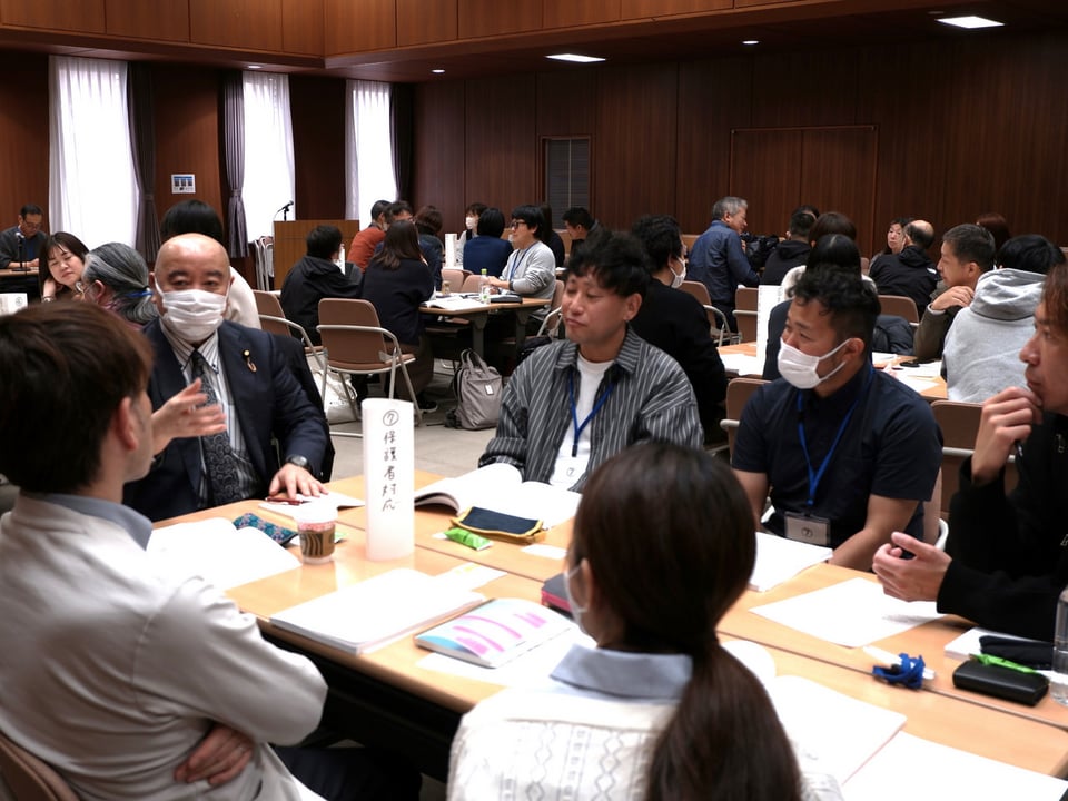 グループワークの前段で、第1分科会では、厚生労働省社会・援護局の竹内尚也保護課長から、第2分科会では、こども家庭庁支援局の野中祥子虐待防止対策課長から行政説明を受けた。その後、職場の実態や課題意識をグループ内で共有しながら、同じ職種同士、関心の高いテーマごとに経験年数別に分かれ、活発な議論を展開した。