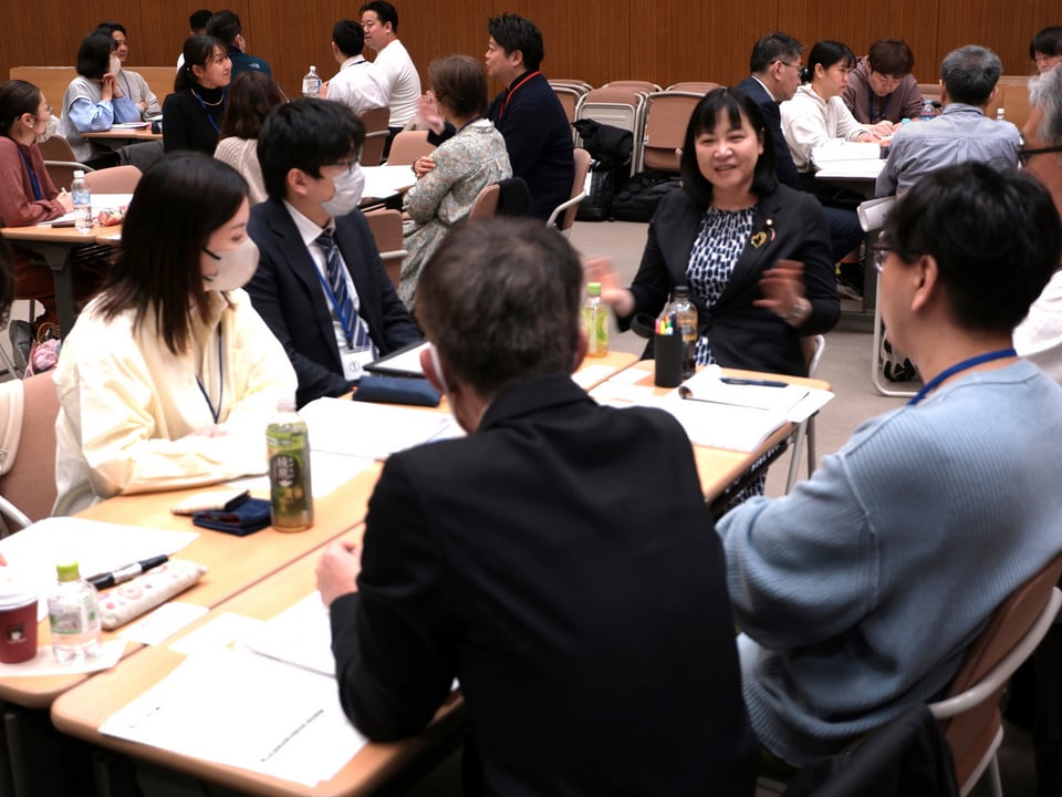 2日目のグループワークには、自治労組織内議員の岸まきこ参議院議員、鬼木まこと参議院議員も参加し、現場の課題に耳を傾けた。
