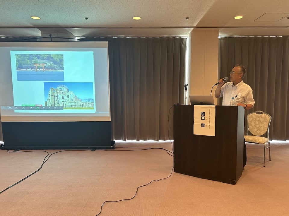 畑口さんは、第2次世界大戦が起こった世界背景を説明し、母親から聞いた当時の状況について詳しく述べた。また、畑口さんは胎内被爆者であることを嫌に思い、昔は周りに伝えることができない感情を述べつつ、平和記念資料館の館長を務めていく中で心境が変化し、平和の尊さを伝えるため、国内外に被爆の実相を伝える活動を行っていると参加者に伝えた。