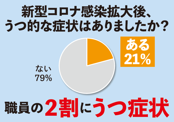 自治労の調べでは、コロナ患者と直接関わる職員の2割にうつ症状が見られ、3割が差別・偏見を感じていると回答しました。また、コロナ患者受け入れ施設で働く看護職員の約半数が「勤務実態が悪化」と回答しました。