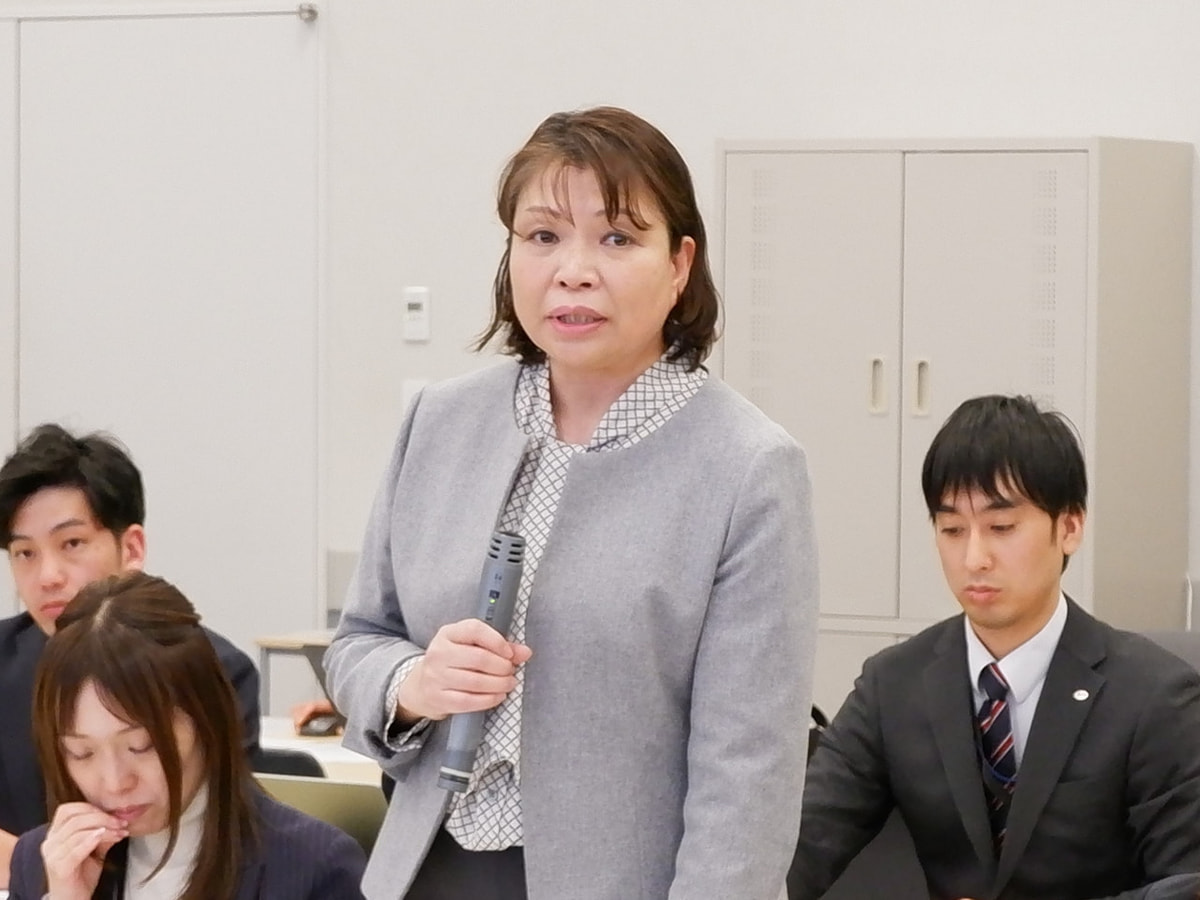 議員からは「(男性比率の多い職場で勤務していた自身の経験から、)特別あつかいを求めているわけではないということに非常に共感する。職場の意思決定の場に女性が登用されていかなければ、状況は変化しない。問題解決に向け引き続き尽力したい」「(地元で)県消防学校の女性寮を整備した。ハード面だけでなく、(ハラスメント等の)ソフト面についても国に訴え続けていきたい。」「男性職員が希望通りに育児休業が取れるような環境づくりについて、上長がしっかり意識を持つことが大事。また、育休取得者の代替要員をどのように手当していくかが課題になっていくと思うが、業種により一律にできるものではないため、それぞれの職場にあった形でのサポートを実現できるように精進してまいりたい。」といった発言をうけた。