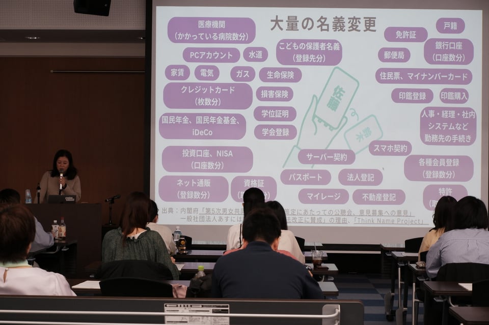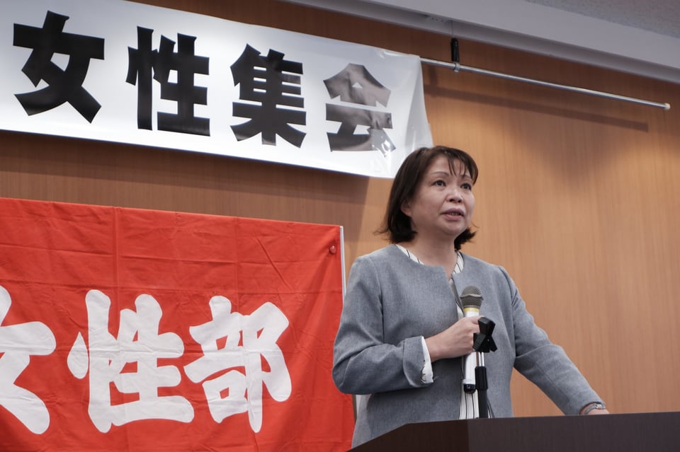 木村副委員長の本部あいさつのあと、「ジェンダー平等と選択的夫婦別姓を考える」をテーマに一般社団法人あすには代表理事の井田奈穂さんが講演。井田さんは、選択的夫婦別姓制度ができるまで結婚を待機しているカップルが58.7万人いることなどを紹介。結婚後改姓しているのは女性は9割以上で実質的に女性が改正を強いられキャリア形成の阻害やアイデンティティの喪失に繋がっていると指摘。選択的夫婦別姓制度とは誰もが「フルスペックで自分の名前を名乗る権利を取り戻す」ための法整備であり、ジェンダー平等、人権の課題であるとして、1日も早い選択的夫婦別姓制度の導入を訴えた。
