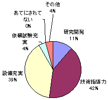 2. 工業技術センターのあり方 工業技術センターは、もともと、独自での技術開発や分析機能を持たない県内中小企業等に対する技術支援を行うために設立されました。技術支援は、新しい技術、製品を開発する“研究開発”、材料や製品の性能等を評価する“依頼試験”、技術に関する情報提供や分析装置等を用いた解析、原因解明を行う“技術指導”の3本柱で構成され、これらに対応するために多岐に渡る技術を獲得、保有してきました。ここでは、工業技術センターの存在意義調査結果及び今回の見直し手法に関するアンケート結果から“工業技術センターのあり方”について議論をします。なお、“依頼試験”と“技術指導”を合わせて“企業支援業務”とし、“研究開発業務”と区別して議論することとします。 |