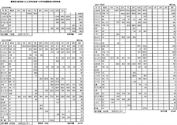 その中で、地元の農家の方は、「学校園・田を利用して色んな虫の働きの学習をして欲しい」「田んぼの中に入って学習することも遠慮せずどんどんやって欲しい」また、「子どもたちのリクエストに応えられるような野菜作りをしていきたい」「納入については、どこよりも気を付けて納入している」などといった子どもたちへの温かい思いも聞かせてくださいました。加えて、他の学校においても、子どもたちが栽培している「学校菜園」で収穫した野菜(なす・さやいんげん・たまねぎ・かぼちゃ・じゃがいも・さつまいも・パセリ・だいこん・はくさい・キャベツ・チンゲンサイなど)や、学区内の市民から無償提供された野菜(さつまいも・だいこん・はくさいなど)を使用しての給食の提供も行っています。2011年度は、26品目24校(160回)で使用することができました。