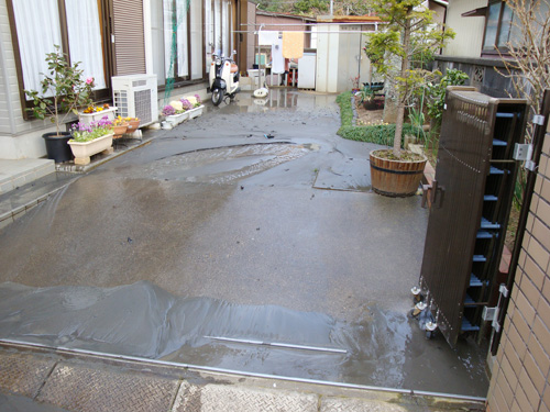 | 液状化現象による電柱の傾き | 液状化現象による浸水 |