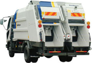 ③ 改善策 回転板の部分を仕分け、新聞、雑誌類、ダンボール、古布を一度に運搬・収集することができれば、問題点に挙げたような「後出し」はなくなるのではないかと考えています(図2)。また、塵芥車であれば、手で積んだり、降ろしたりする作業も少なくなり、作業員への負担、安全面の観点からみても、非常に有用な方法であると考えます。