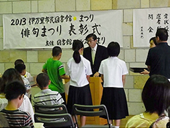 図書館☆まつりで行われた俳句まつりの表彰式。