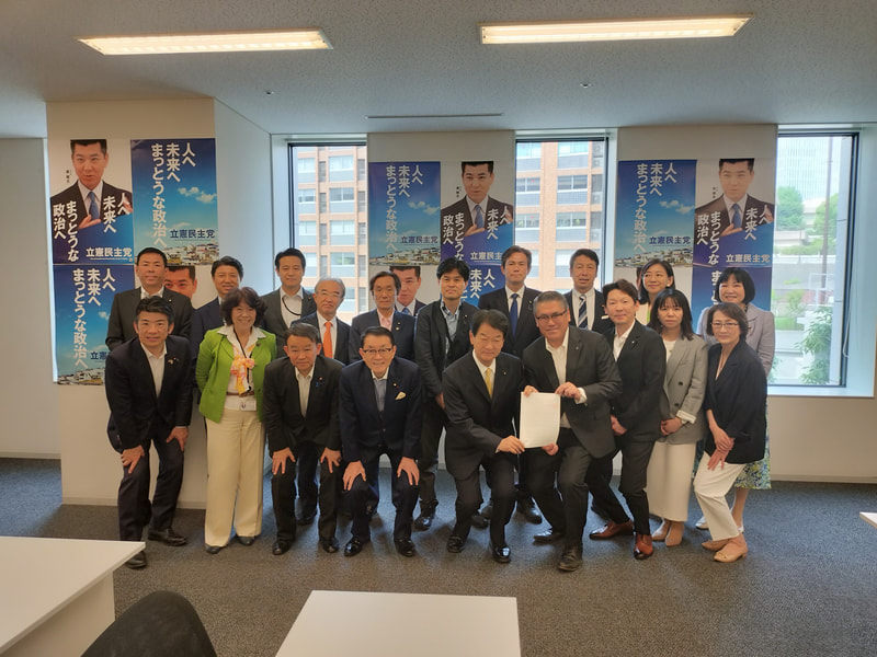 岸まきこ議員(2列目右端)をはじめとする立憲民主党の議員と、自治労本部